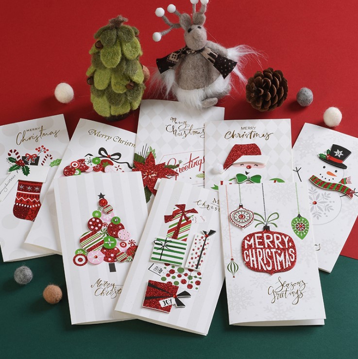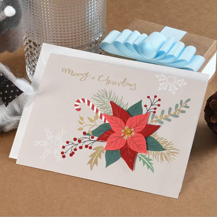 (Six)Christmas greeting card New Year Three-dimensional Kraft paper hollow business blessing message card envelope