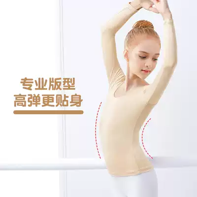 Children's Dance base shirt Flesh Invisible Girls Lotted Dancing Clothes Long Sleeve Spring and Autumn Tight Underwear