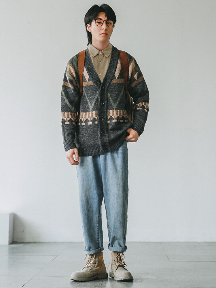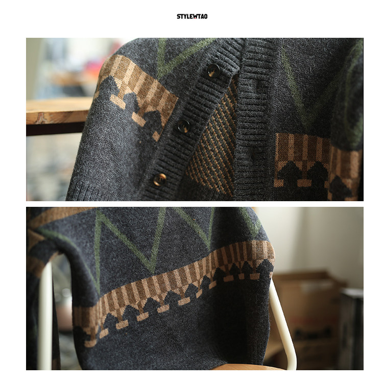 Hey Ma Seven as a Japanese autumn winter V-led knit cardiovert jersey jacket Chauded cardiovert sweater sweater sweater