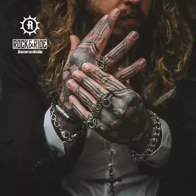 (Official) American ROCKRIDE Thorn shield ring 925 sterling silver man