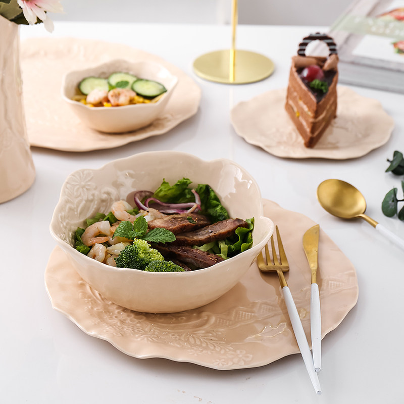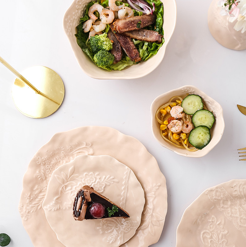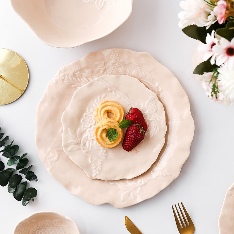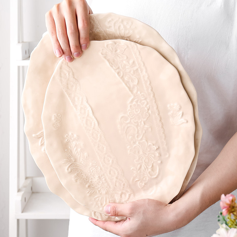 Original Japanese ceramic plate lace cloth irregularly nude plate pad lightly in wind plate