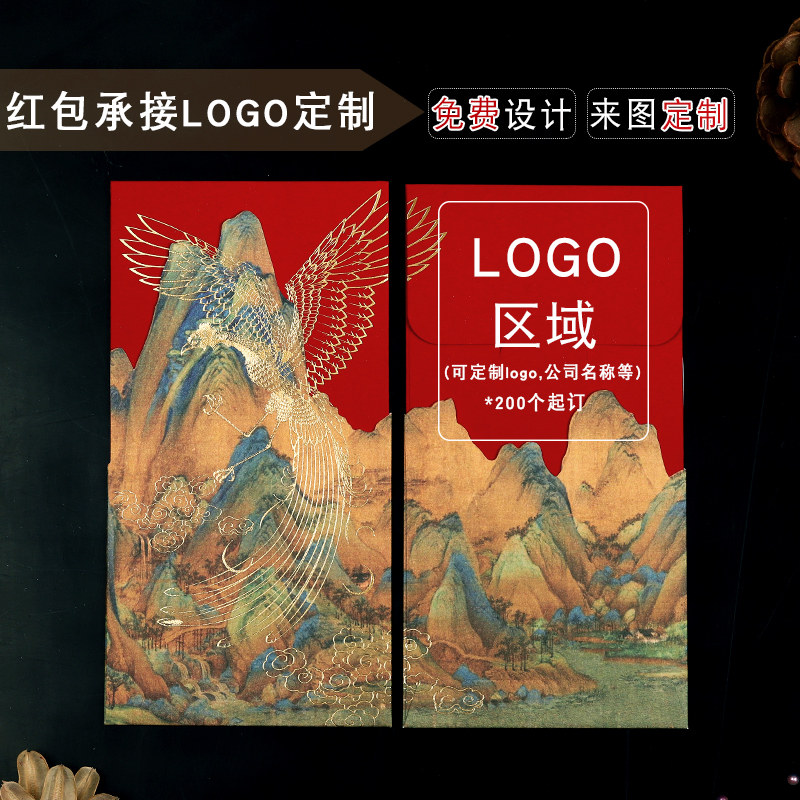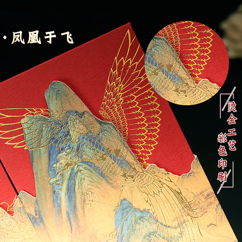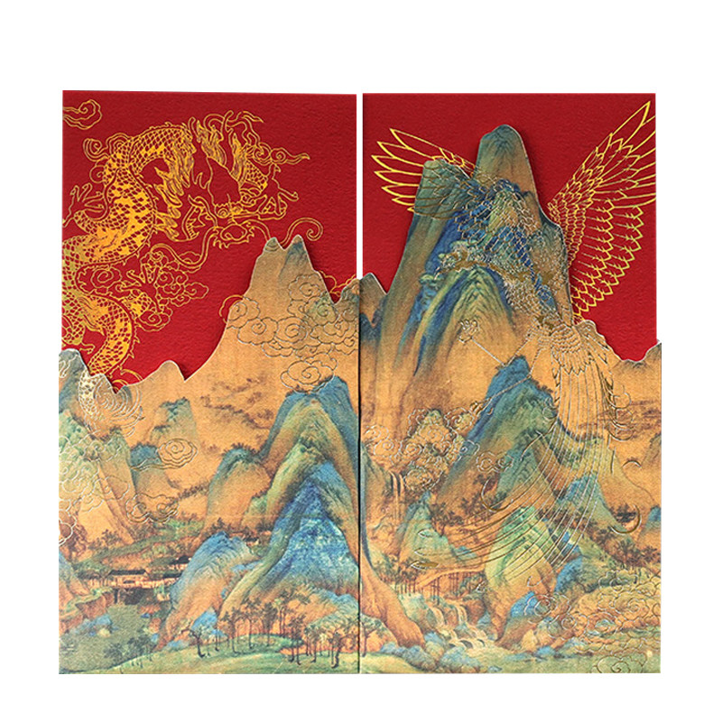 Cultural and creative gift red envelope bag high-grade custom wedding Palace Museum Bronzing red packet wedding thousands of miles of country map