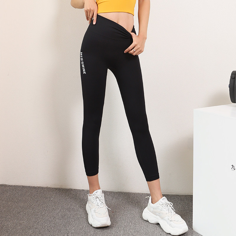 Fitness pants women's elastic tight high waist hip eight-ninth pants quick-drying running yoga peach sports pants show thin tide