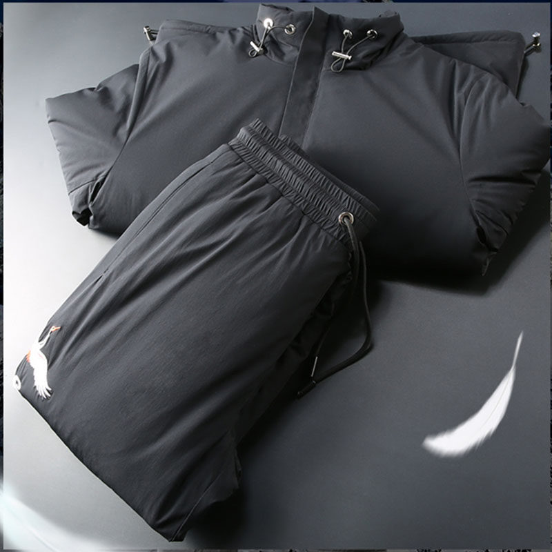 JSBD Cold Winter Warm White Goose Down Two Sets High-end Embroidery Plus Suede Thickened Men's Neckline Duvet Jacket Suit