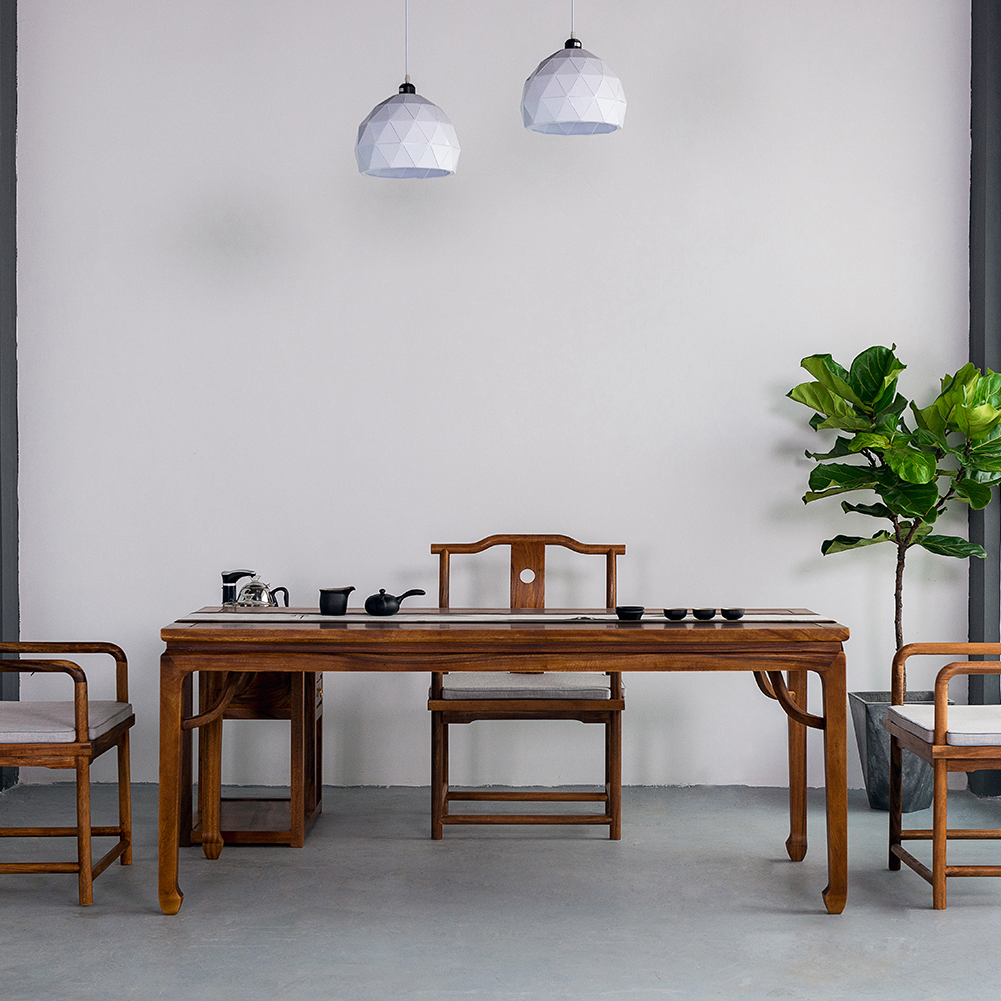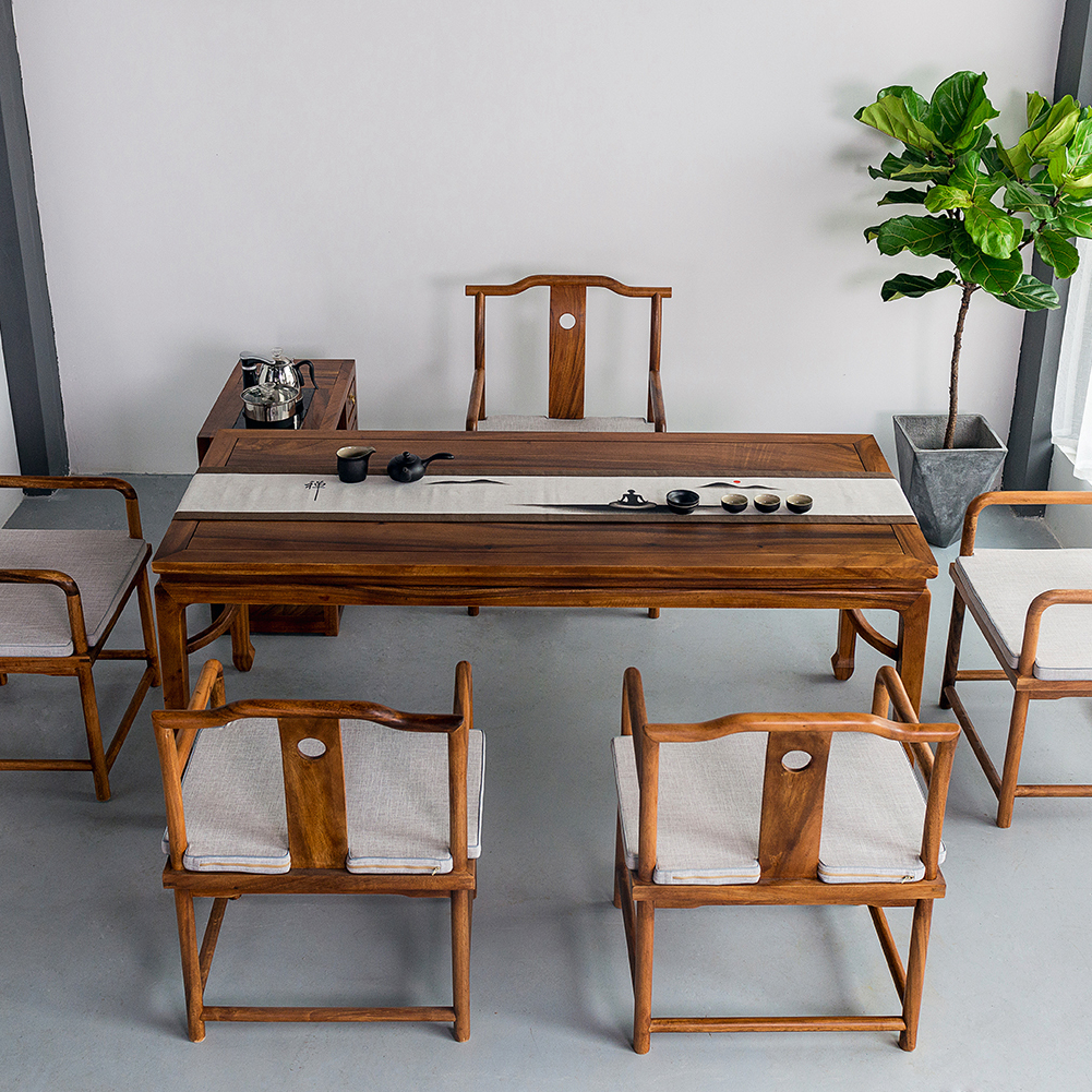 New Chinese tea table and chairs combined Zen solid wood minimalist tea table a few walnuts wood logs furniture full solid wood tea table