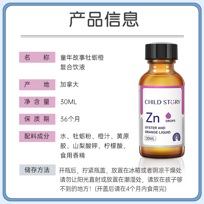 Childhood Story Oyster Orange Compound Drink Children Zinc Drops Canada Original Imported 30ml Bottle