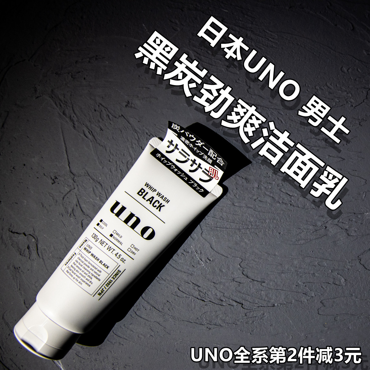 () UNO our men's black charcoal powerful and energetic wash-face cream washout milky 130g controlled oil