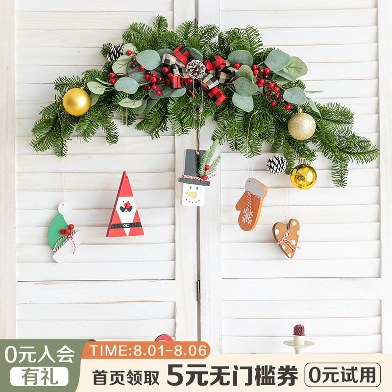 Pine needle long rattan pine needle lintel flower pine needle strip - no fruit pine needle lintel flower Christmas small pendant - snowman