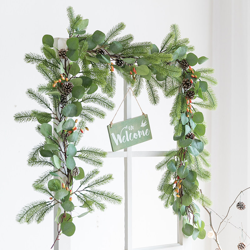 A Ying Christmas rattan decorative flower branches simulation pine branch staircase plant green leaf pine needle pendant window layout