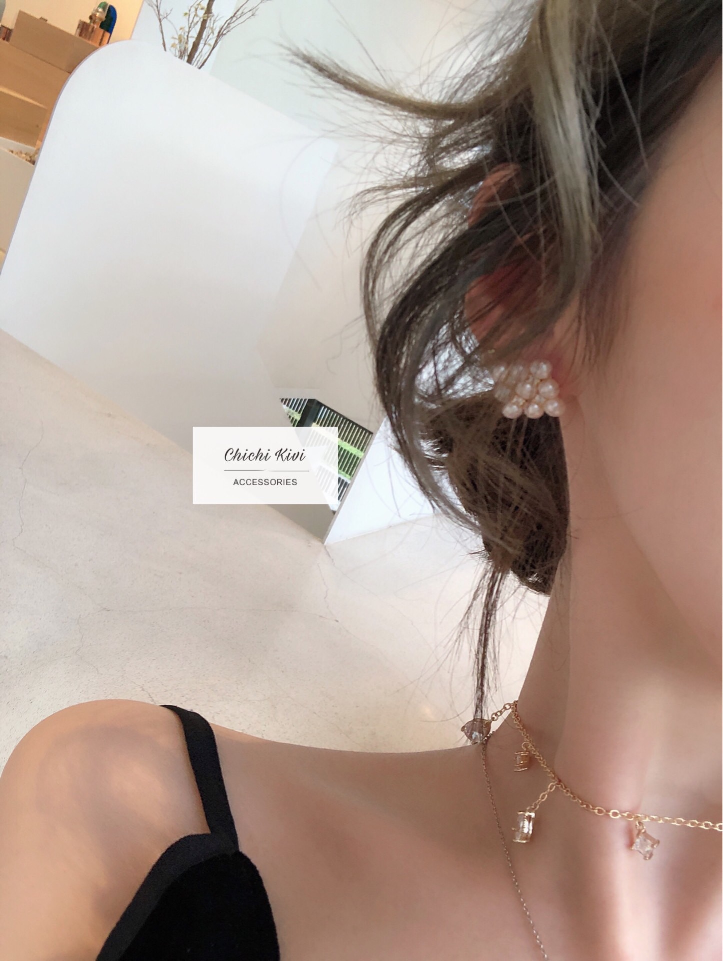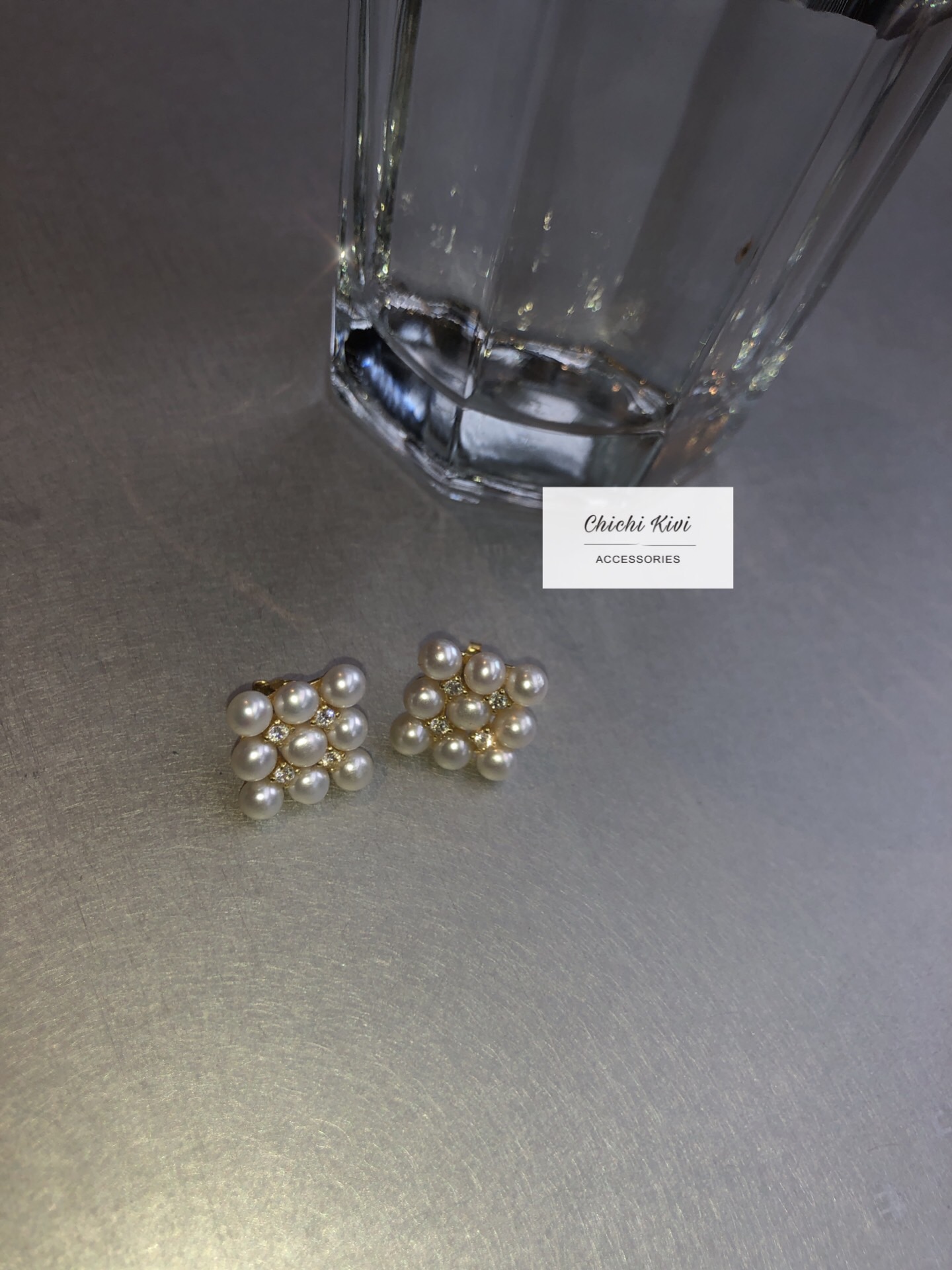 chichikivi Natural freshwater pearl retro fat square pillow with hand inlaid Japanese ear pin 925 ear needle