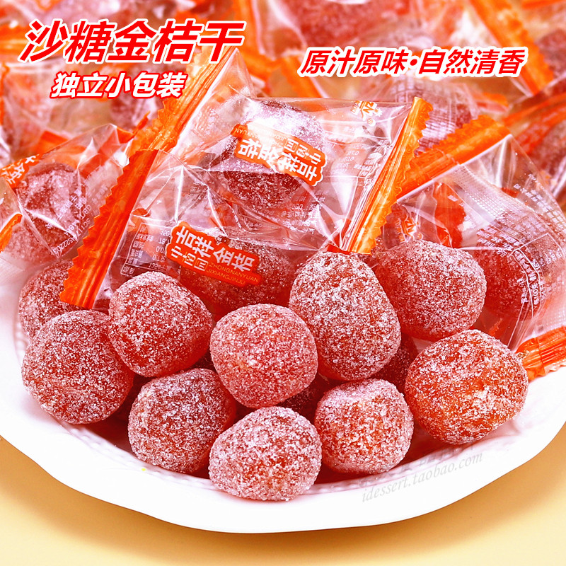 。 Rock sugar kumquat independent small package delicious appetizer snack small kumquat dried bulk granulated sugar kumquat candied fruit