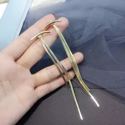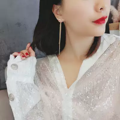 Earrings female 2020 New Tide ear refining sterling silver exaggerated ear needle fashion personality Net red temperament long version tassel earrings