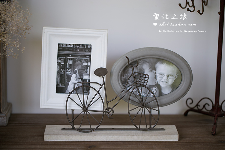 Resin crafts ornaments American country home decoration Bedroom miscellaneous goods Wind Wrought iron bicycle photo frame (double frame)