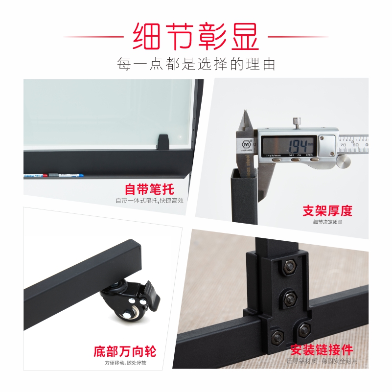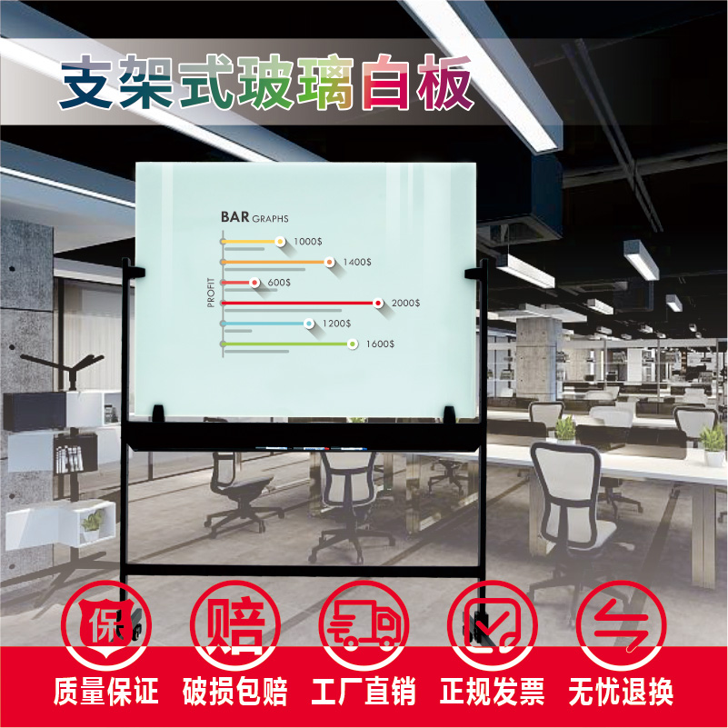 Qifu magnetic tempered glass whiteboard Mobile bracket home office teaching training conference Wall sticker Magnetic day class writing board Rewritable Kanban board Hanging vertical dual-use glass blackboard