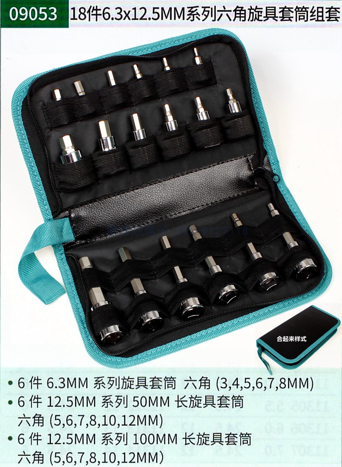 09051 1 18piece 6 3X12 5 rotary set 09052 1 18 piece 12 5 flower rotary sleeve 09053 1 18 piece 6 3X12 5 hexagonal rotation