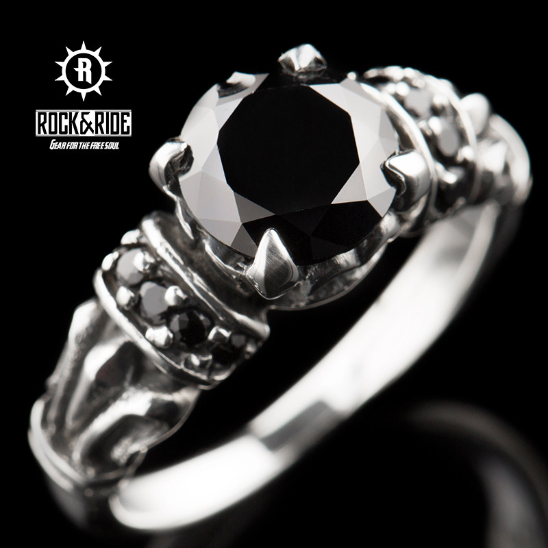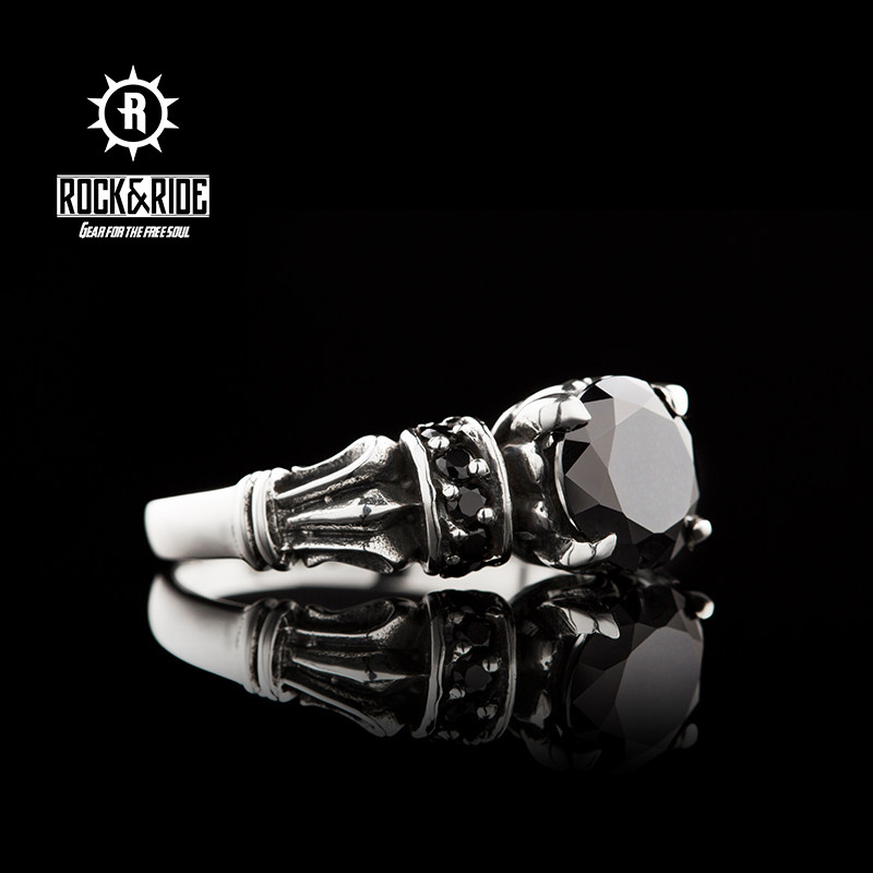(Official) American ROCKRIDE obsidian ring 925 sterling silver fashion personality retro couple