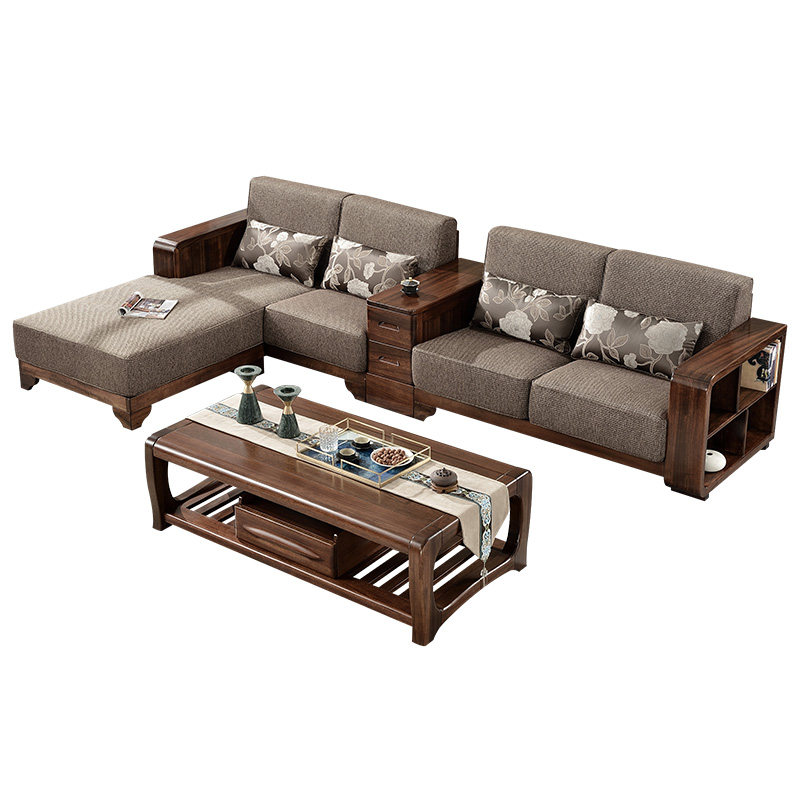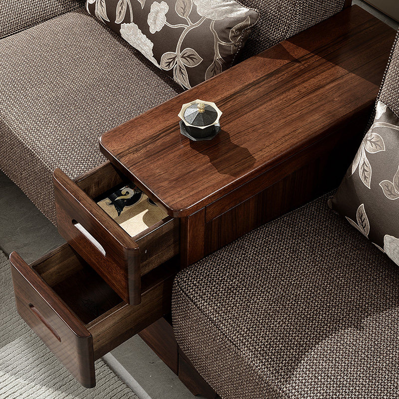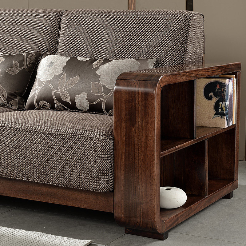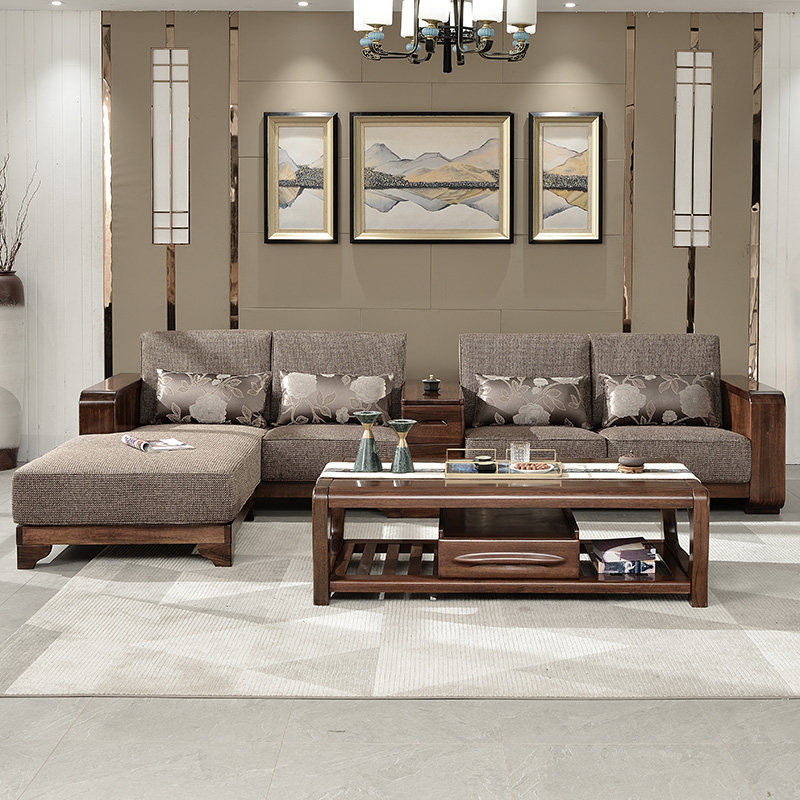 Solid Wood Sofa Set Black Walnut Modern Chinese Small House Living Room Solid Wood Fabric Concubine Corner Sofa