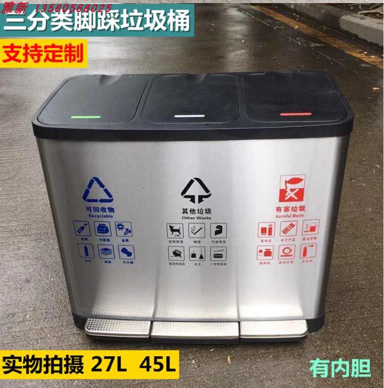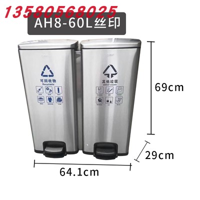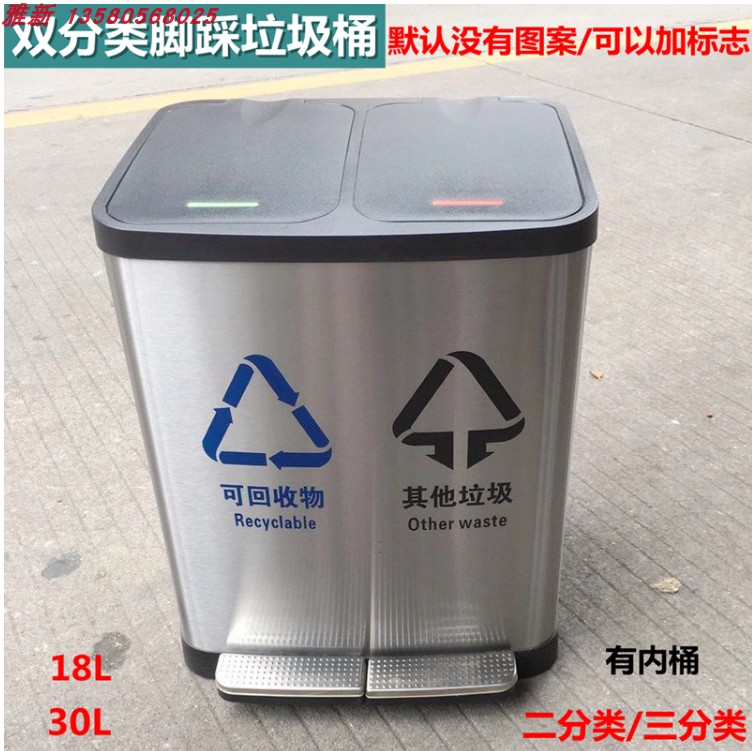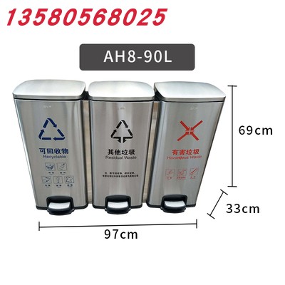 Garbage Sorting Barrel Stainless Steel Dry Wet Sorting Barrel Room Inside and outside Two classification Three-classification pedaling with lid Four classification