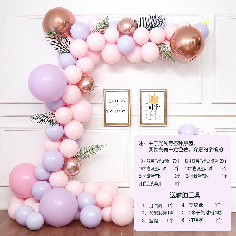 Macaroon balloon chain decoration background wall net red red book wedding baby birthday party opening scene layout