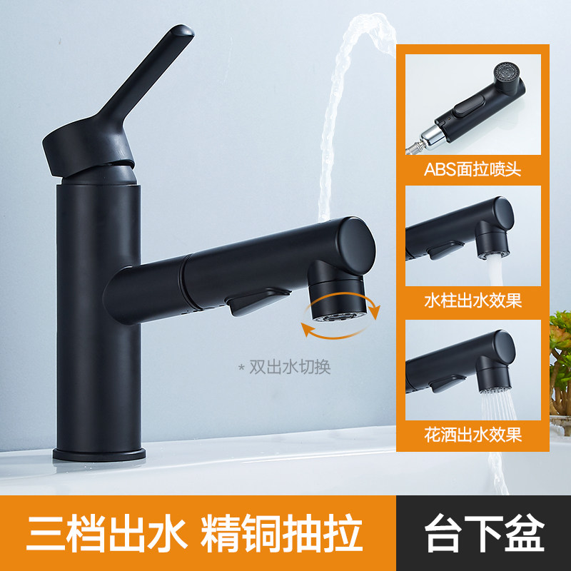 All-copper cold and warm faucet Powder room basin faucet Rotary pull-out faucet washbasin hand pool bathroom sink nozzle