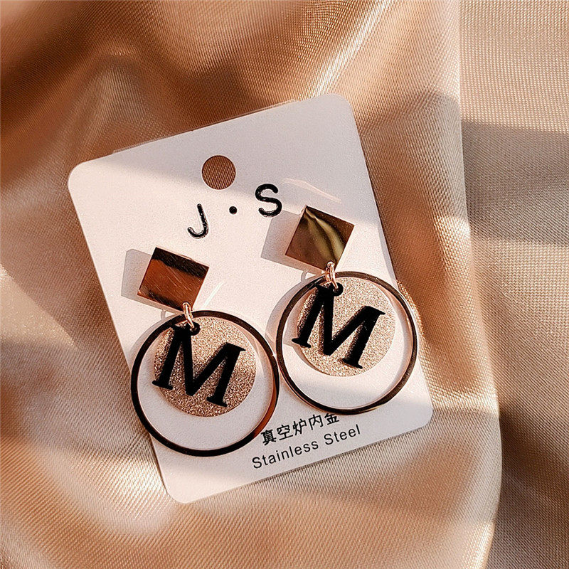 South Korea 100 hitch anti-allergenic titanium steel ear pin long version geometric display face slim earrings net red personality Exaggerated Earrings