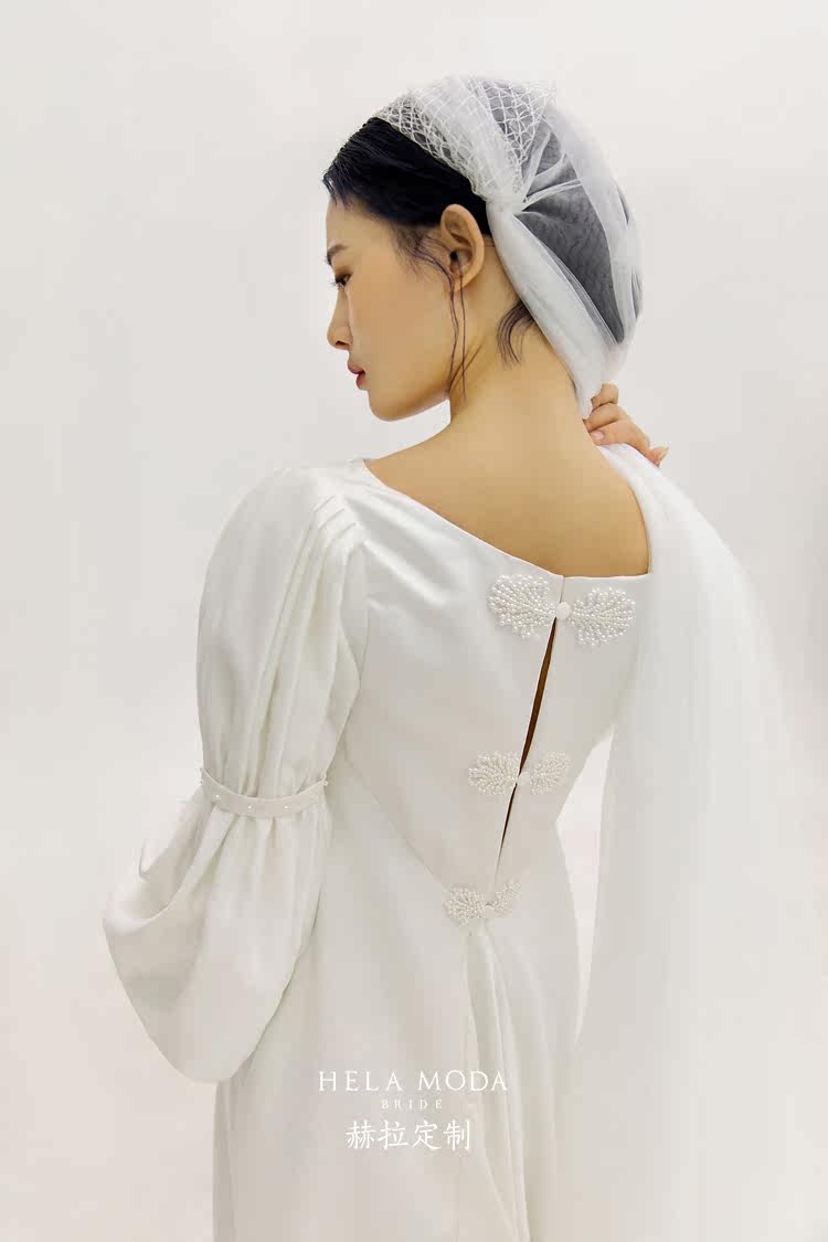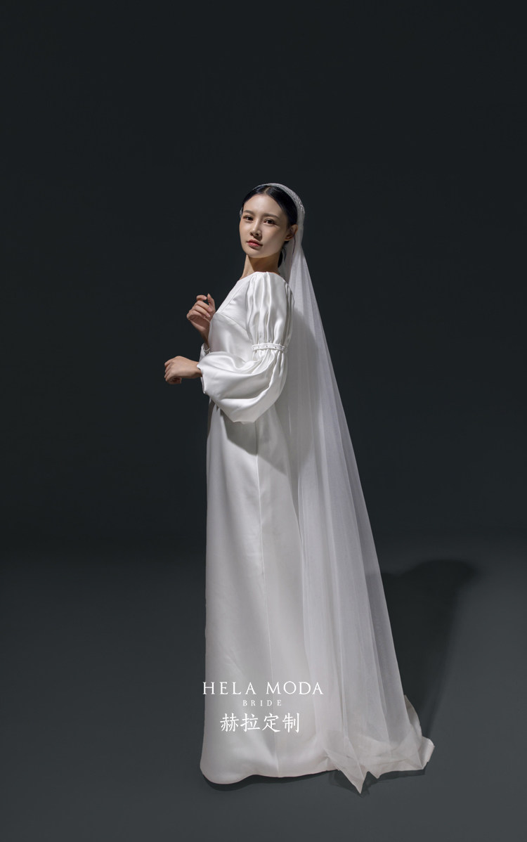 Hera customizes original new product "Bening" extremely minimalist and satin-style retro to the house to shoot the Virgin wedding dress