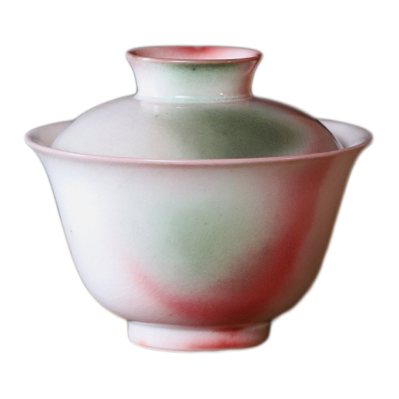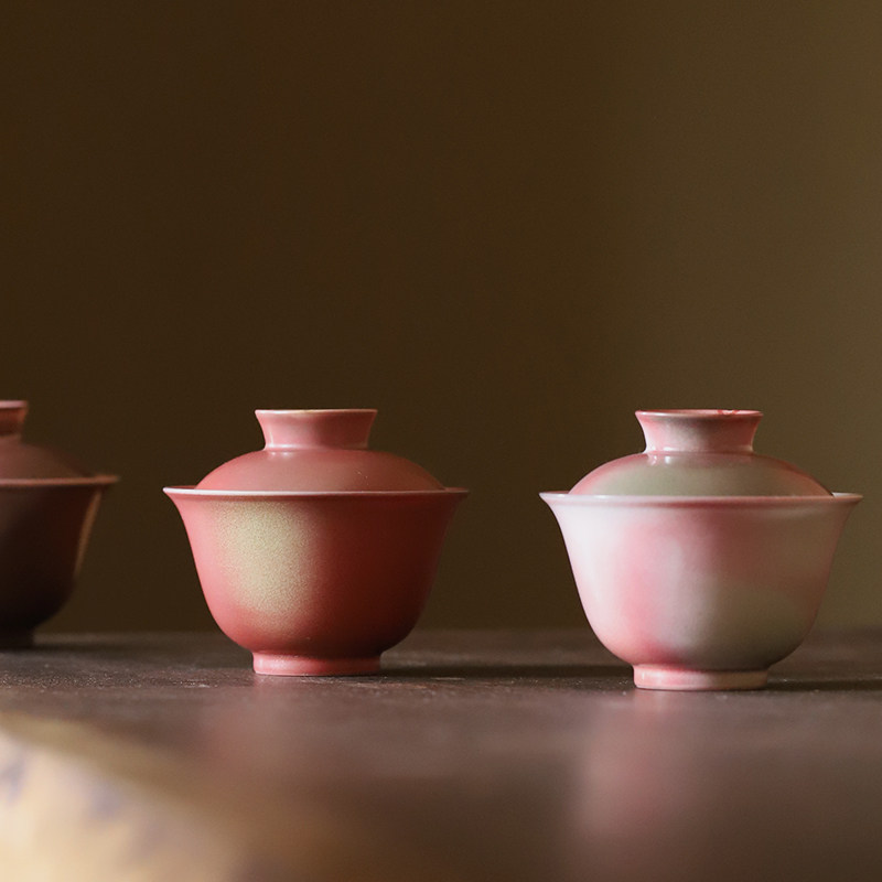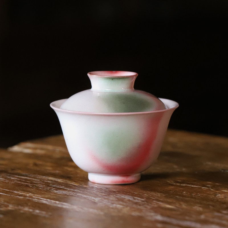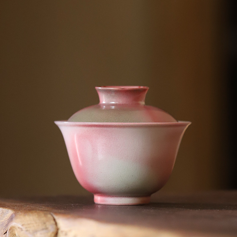 Jingdezhen Firewood Burning Lid Bowl single tea bowl Artisanal Creative Su powder red Gongfu Tea with ceramic household