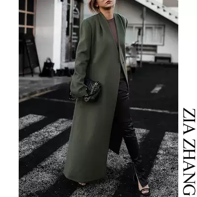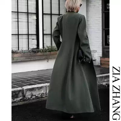 Z boss elegant tulip collar V-neck long wool coat buds hem slim woolen jacket