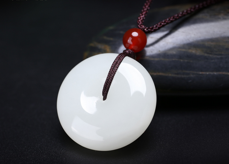 Grade A and Tian Yubuckle 25MMA Class and Tian Yubuckle 30MM Collection Class Goat Fat Jade Button 25MM Collection Class Goat Fat Jade Button 30MM Baiyu Ping An buckle 20mm (black rope)