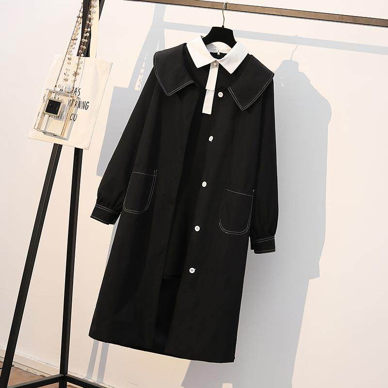 Plus size plus size maternity coat autumn and winter loose mid-length Korean version 200 jin fat sister doll collar windbreaker