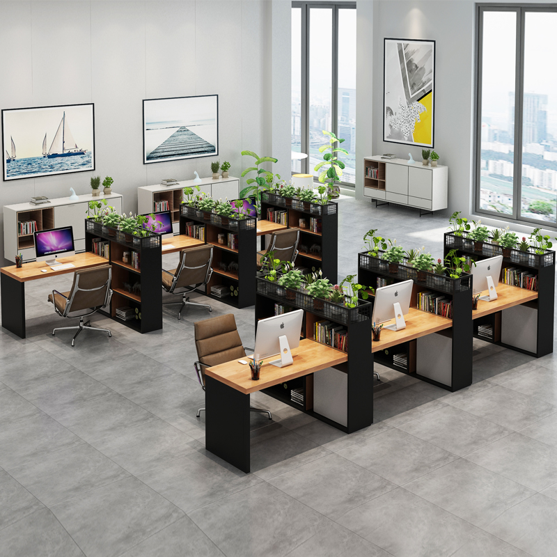 Industrial Wind Solid Wood Desk Brief Modern Staff Computer Desk 4 Artificial Position Partition Office Table And Chairs Combination