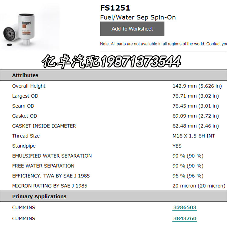 FS1251 CX0710F1 3931062 3903202 3286503 3843760 P550248 filter element
