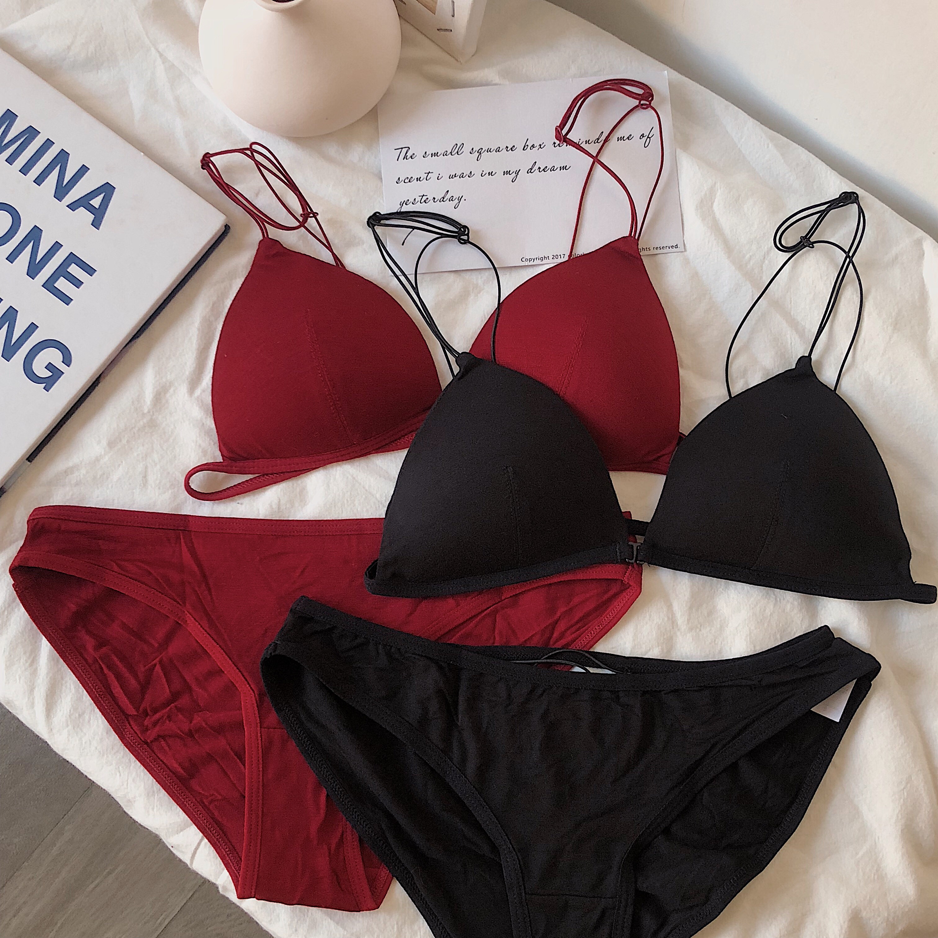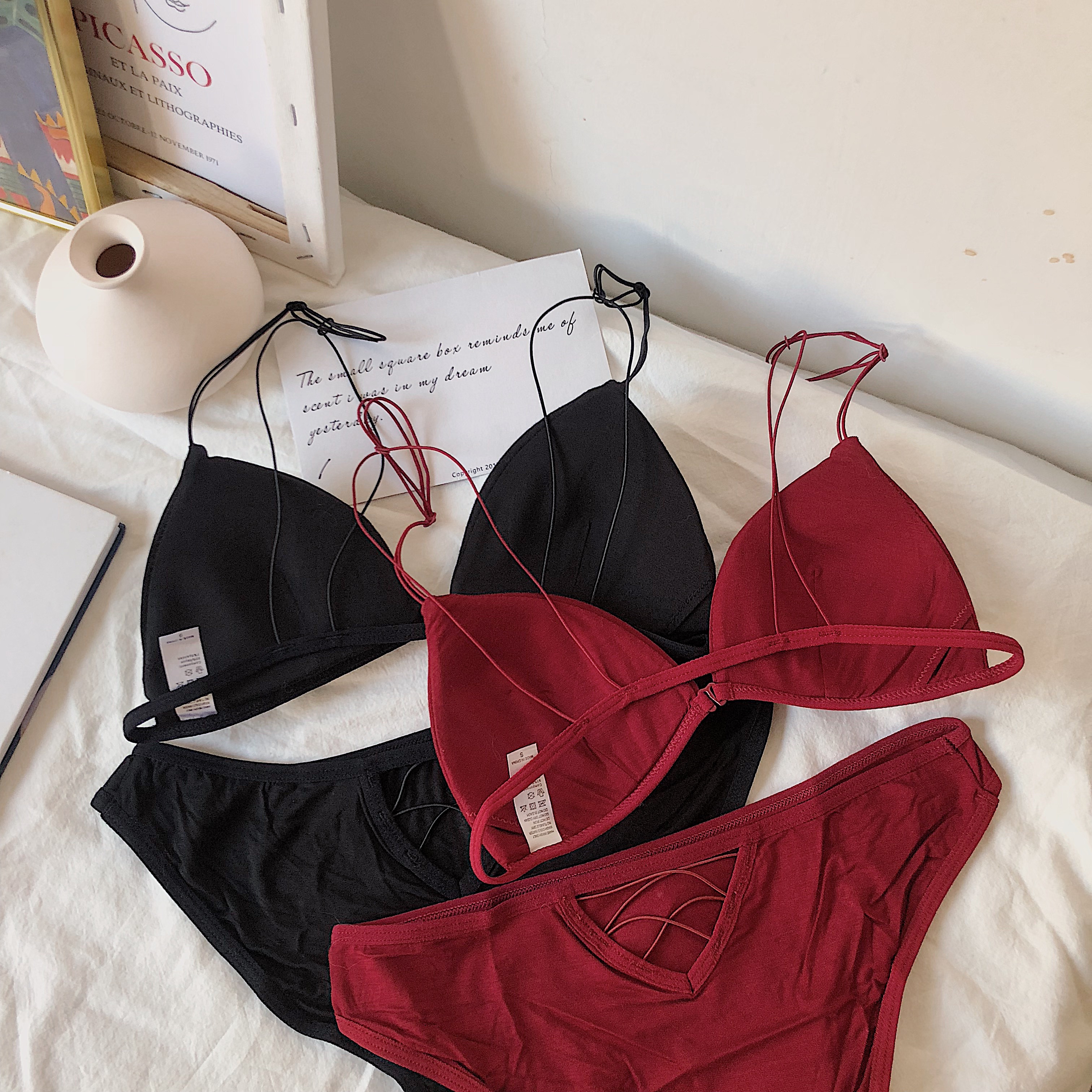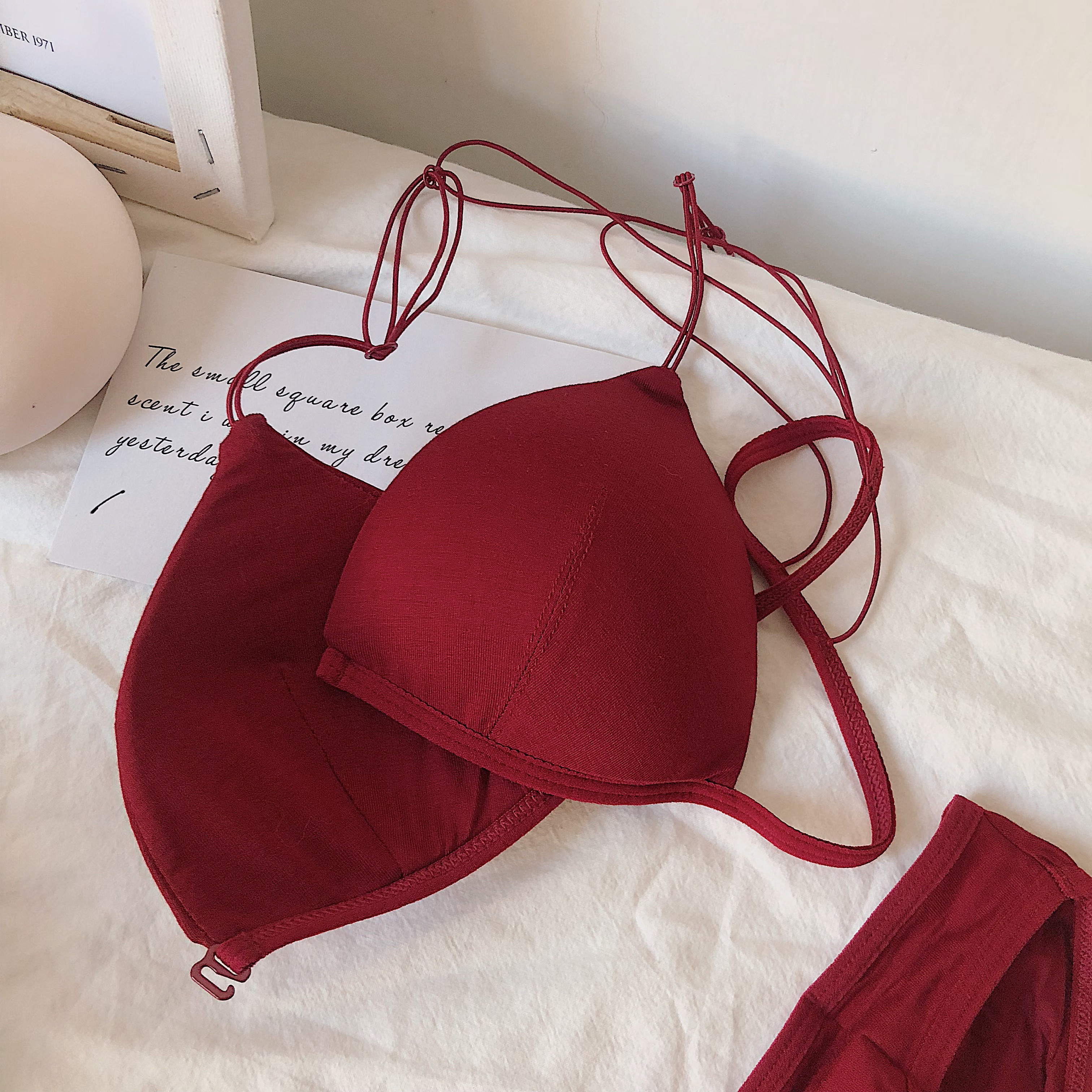 XIAOMiWU Fine Shoulder Strap Fa Type Beauty Back Underwear Suit Sexy Ultrathin Front Buckle No Steel Ring Small Chest Suit