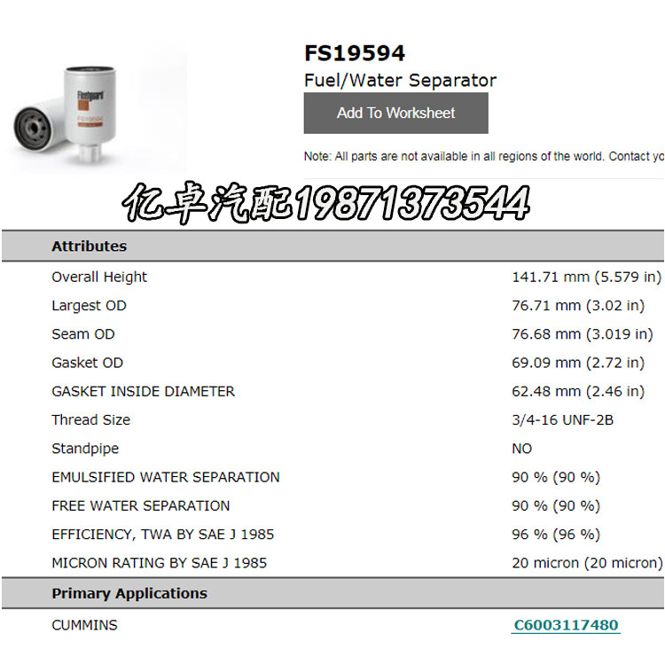 FS19594 600-311-7480 P550550 CX-6467 BF1275 33616 diesel filter
