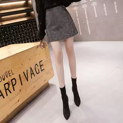 Counter skirt women 2021 autumn and winter New Sequins hot diamond high waist A- line dress hip skirt slim one step skirt