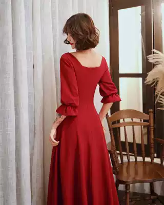Wedding toast 2021 summer new red dress thin bride back engagement evening dress usually wear