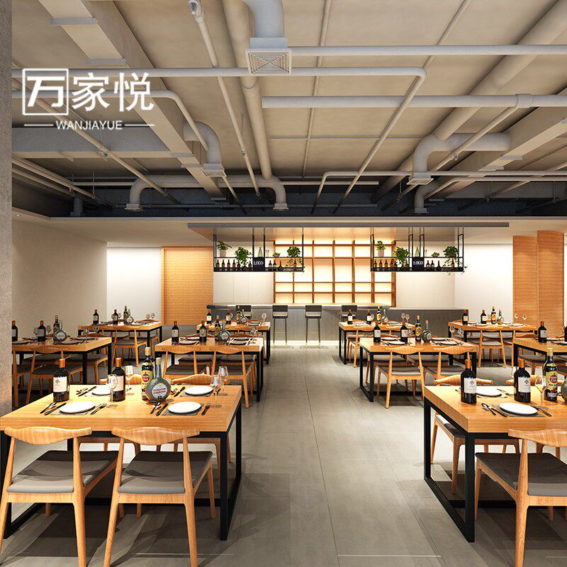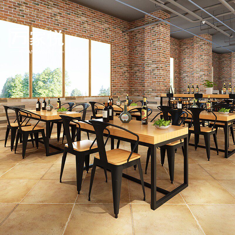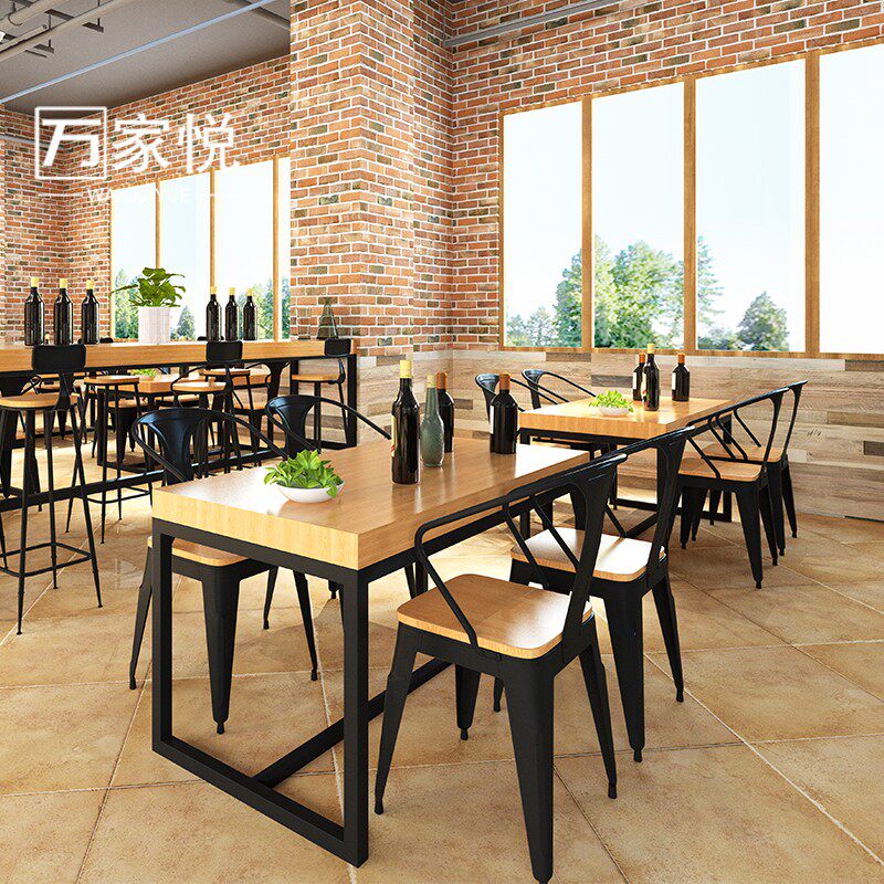 Retro industrial style cafe Western restaurant table and chair combination theme dining room wrought iron solid wood long table one table and four chairs