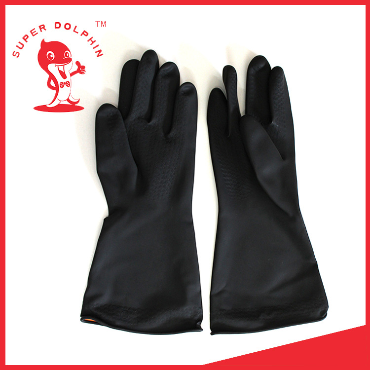 Black double layer wear-resistant acid and alkali natural latex work industrial rubber gloves labor insurance gloves thickened natural latex