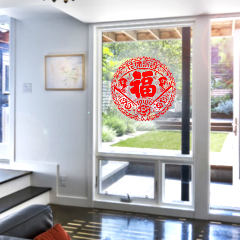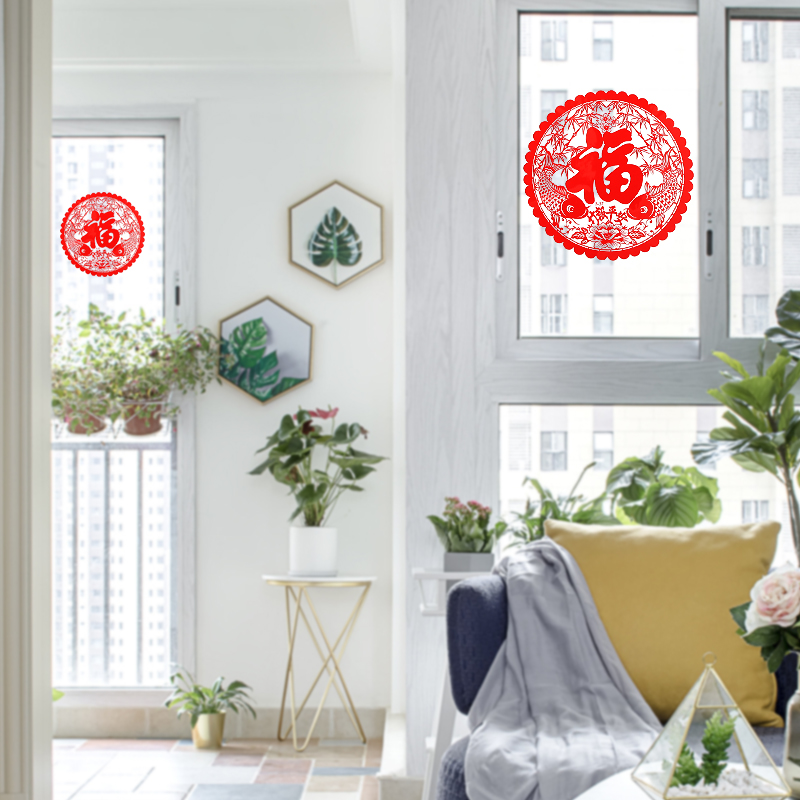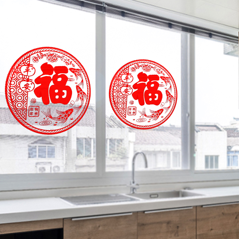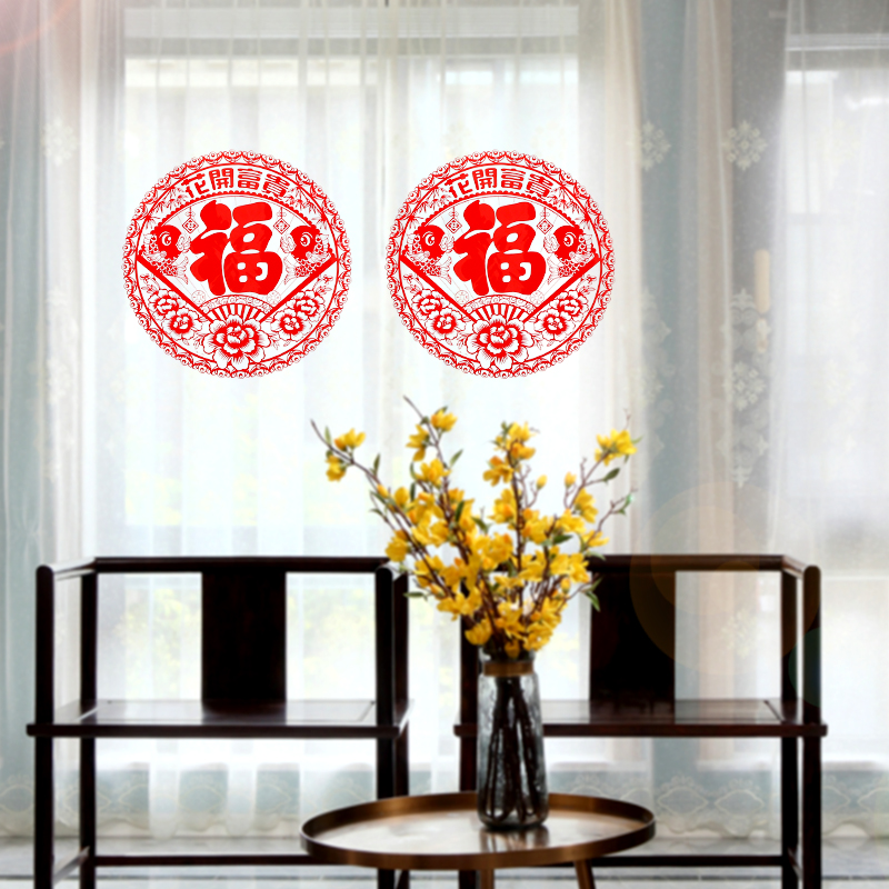 Fu word window grille electrostatic stickers Glass stickers door stickers New Year paintings New Year Spring Festival housewarming shop window decoration