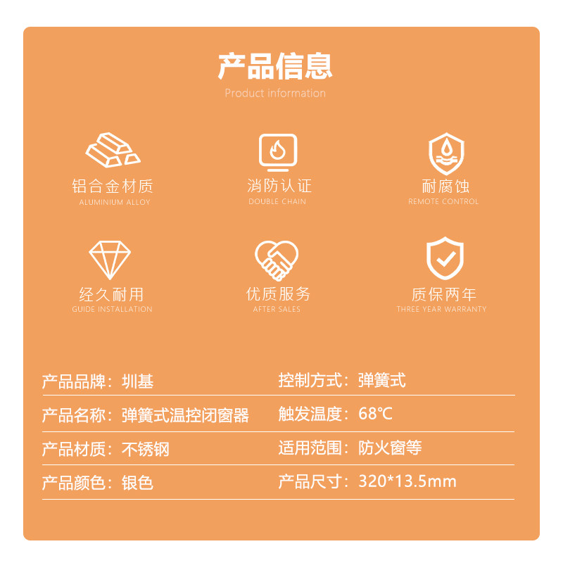 Fire - prevention hidden hidden temperature control window closer 68 degree release stainless steel fire - control temperature control ball