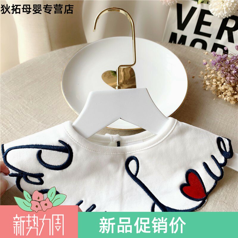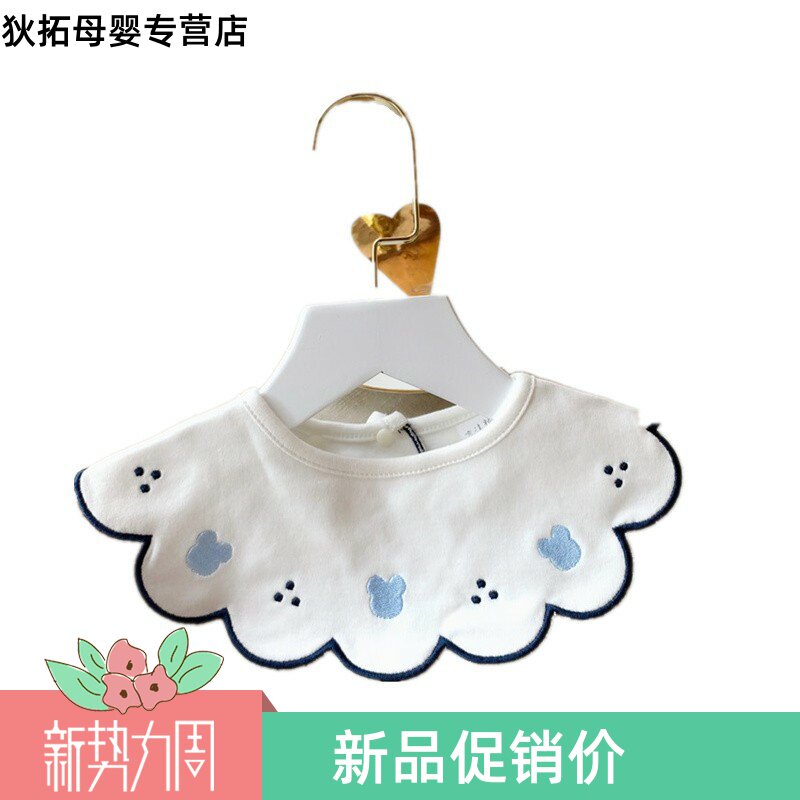 Embroidery Love Red heart Cute embroidery Bear head lace edge Rabbit shell small sailboat White ruffle Blue ruffle petal section black belt bow Blue stripe collar blue background yellow butterfly