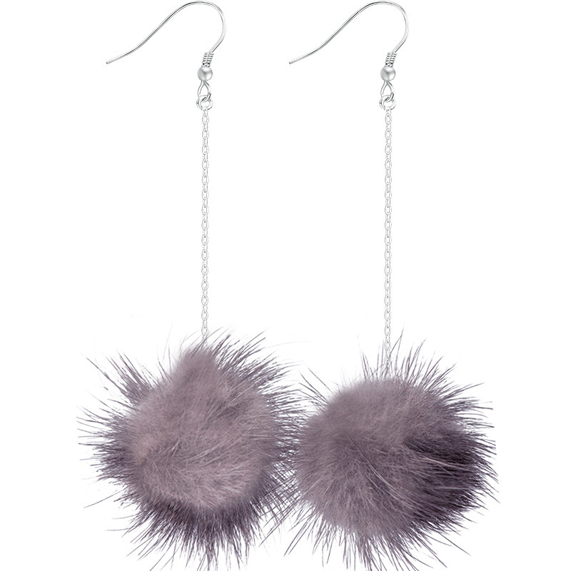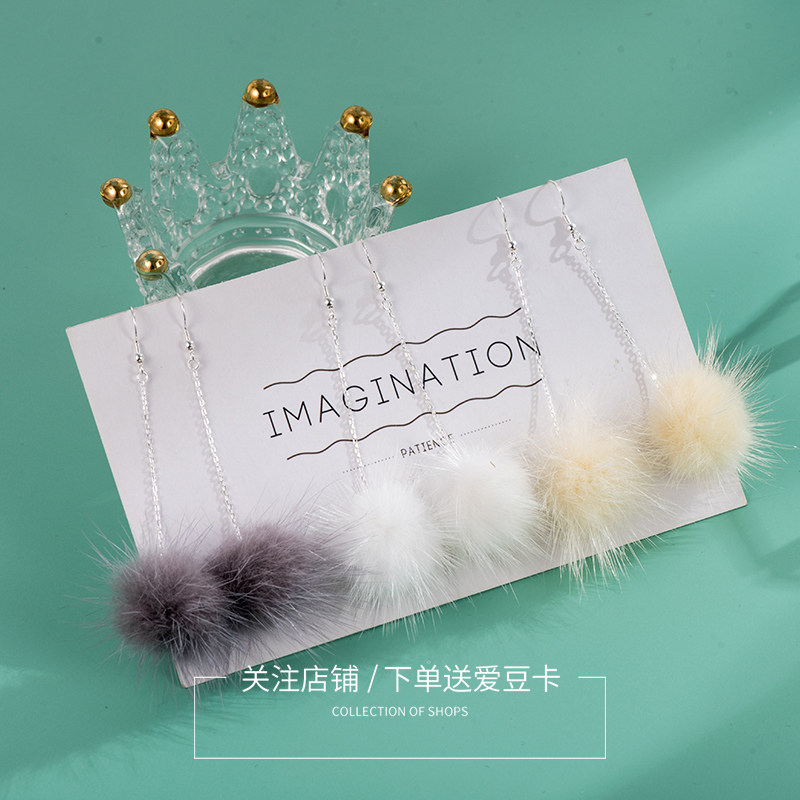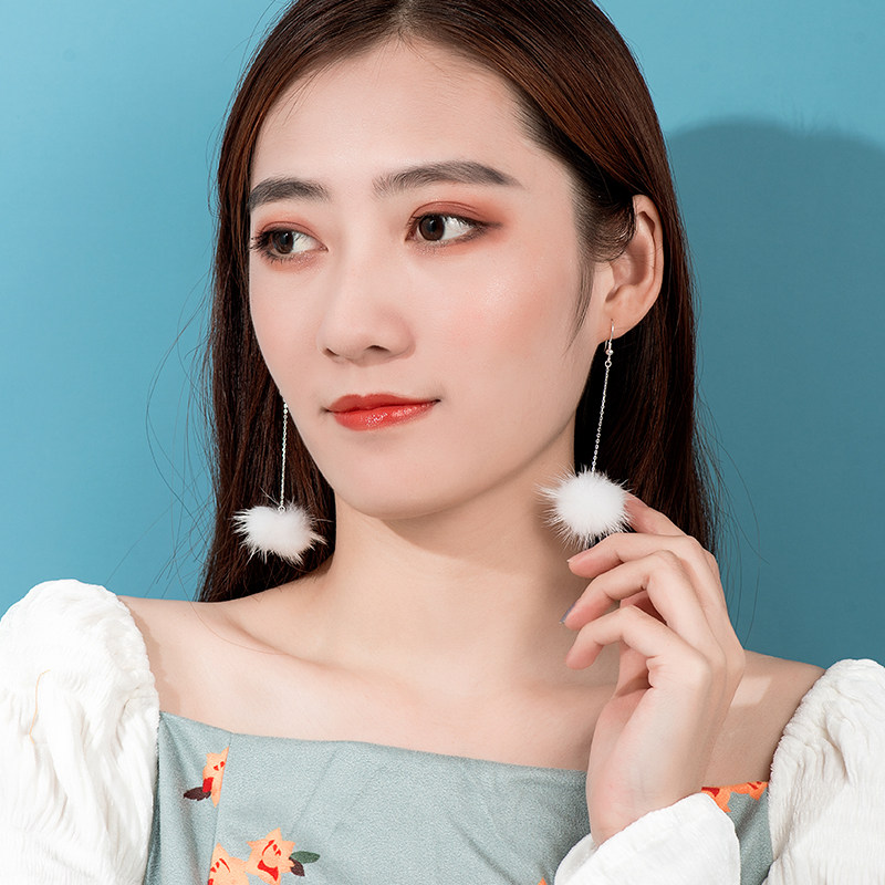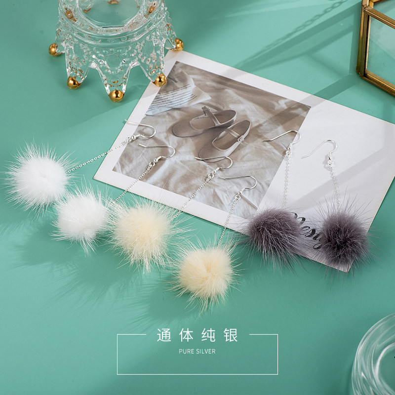 Suitable for summer pure silver ear hook earrings plush ball ear needle warming curry colour ear chain 100 hitch 2022 new tidal spring summer