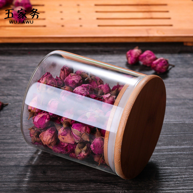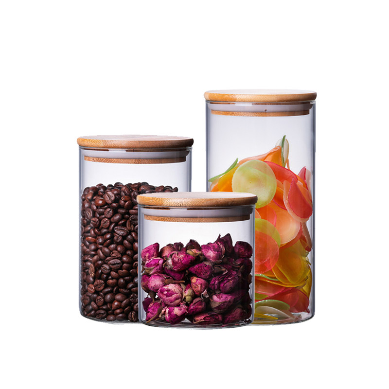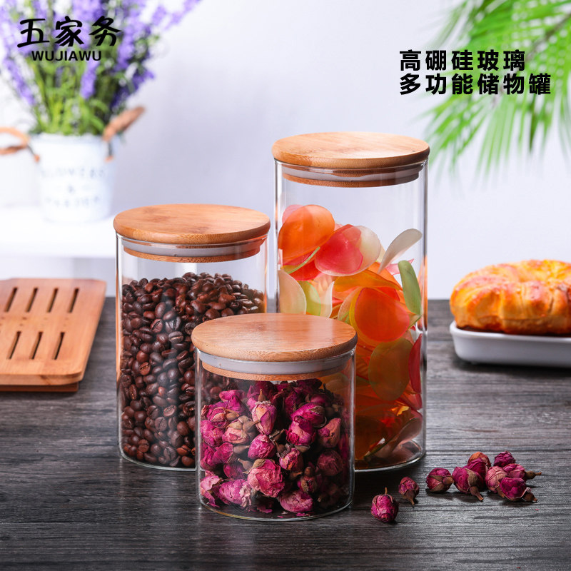 High new boron silicon heat-resistant glass storage tank coffee bean assorted appliance bamboo lid sealed tea preservation bottle