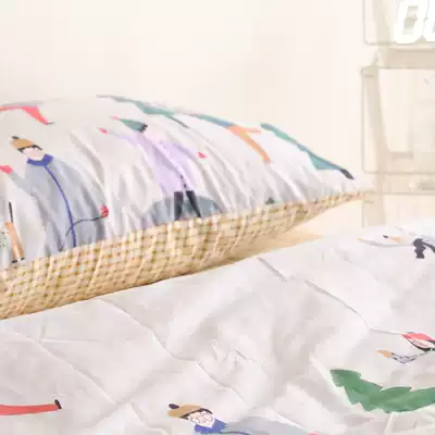 When the heavy snow passes through this town, hand-painted illustration of pine trees snowing in winter, cotton single-piece bed, single-bed duvet cover