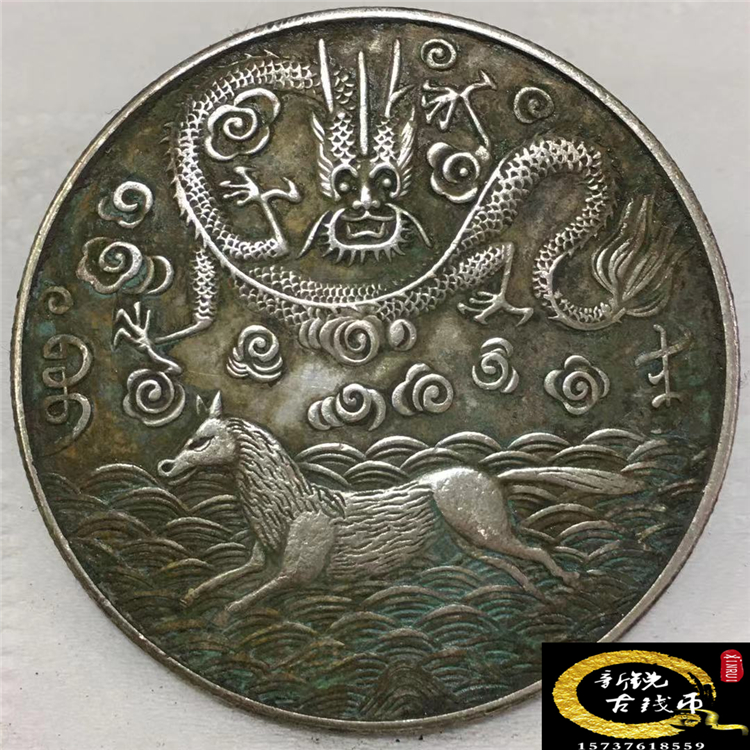 Pure Silver Imitation Ancient Raw Pit Green Rust Light Clue Silver Coin Twin Longding without Guangdong Province building back Longma Silver Yuan