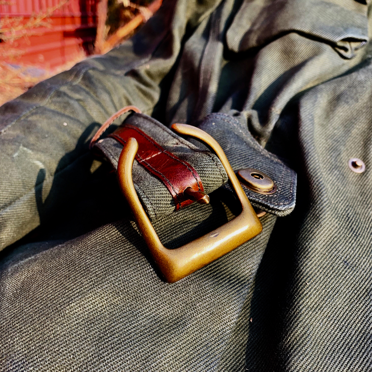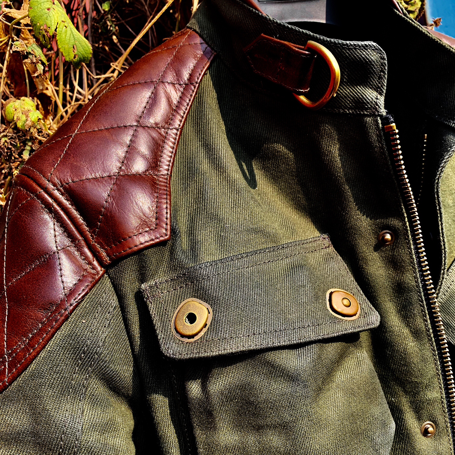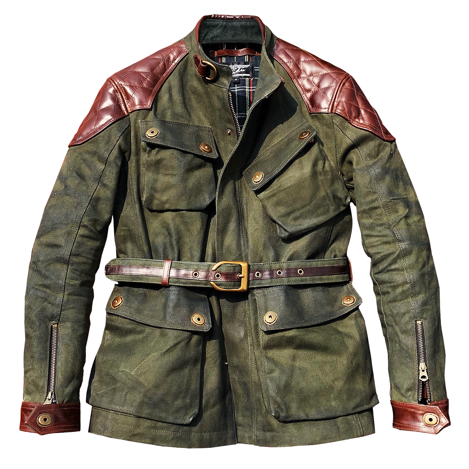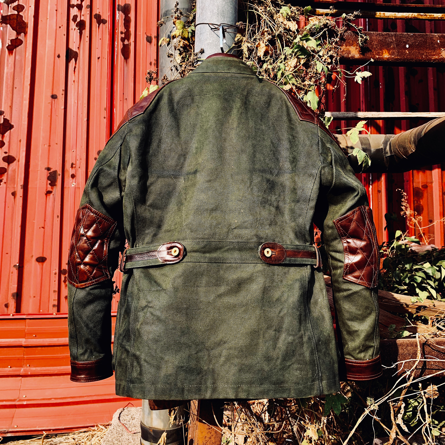 Non-thedi American vintage kake oil wax canvas long hunting jacket stitching cowhide motorcycle leather