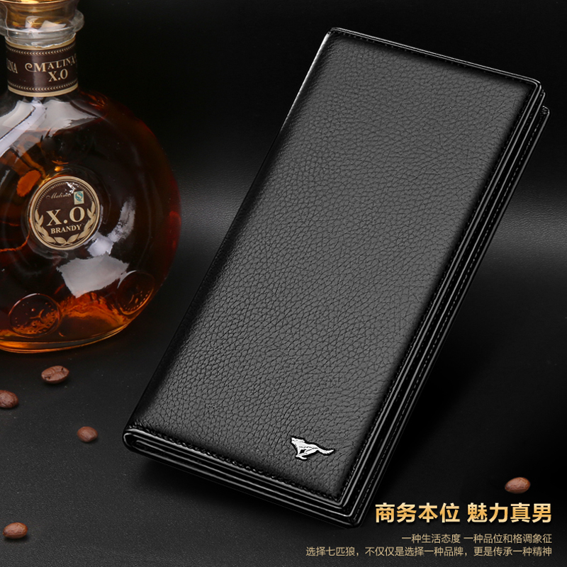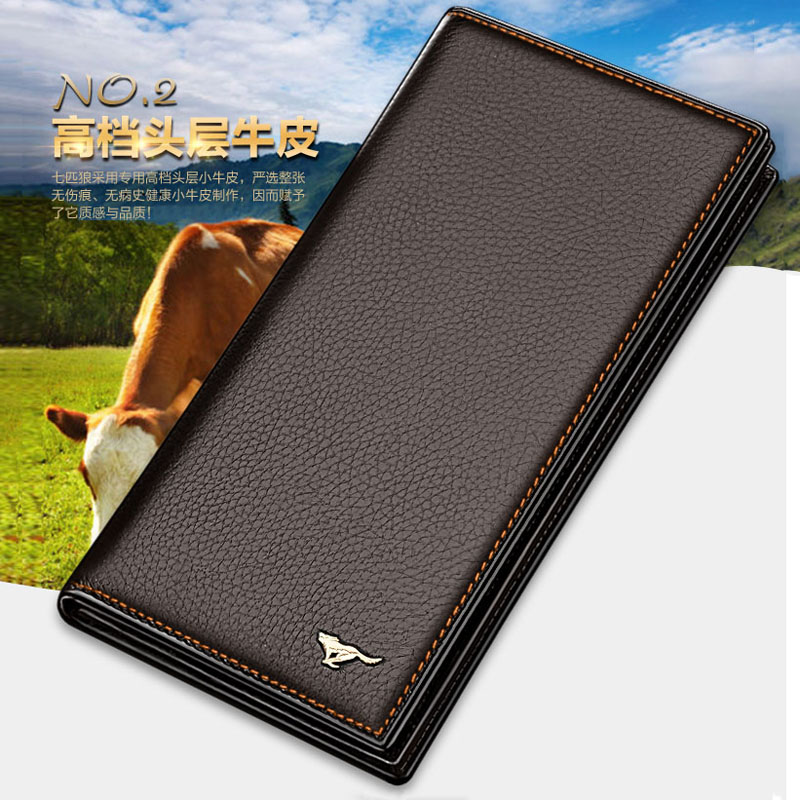 Seven Wolves Men's Long Money Wallet Full Real Leather Wallet Brief Youth Brands Pure Head Layer Bull Leather Ticket Clips Soft