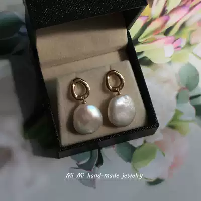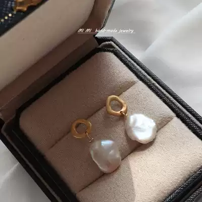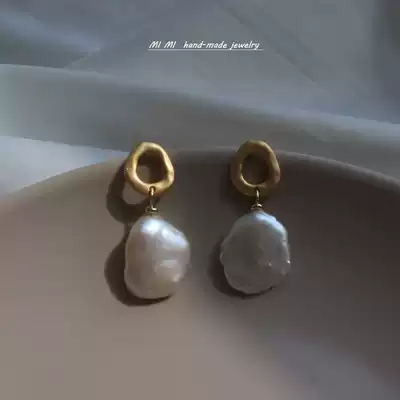 Baroque special-shaped pearl earrings retro sterling silver plated 18K gold earrings female earrings earring clip Joker temperament advanced