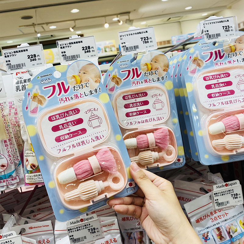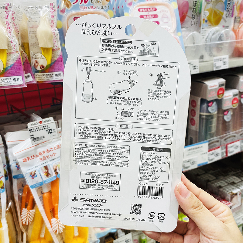 Japan sanko milk bottle brush nipple brush baby bottle pacifier outdoor travel portable brush set made in Japan