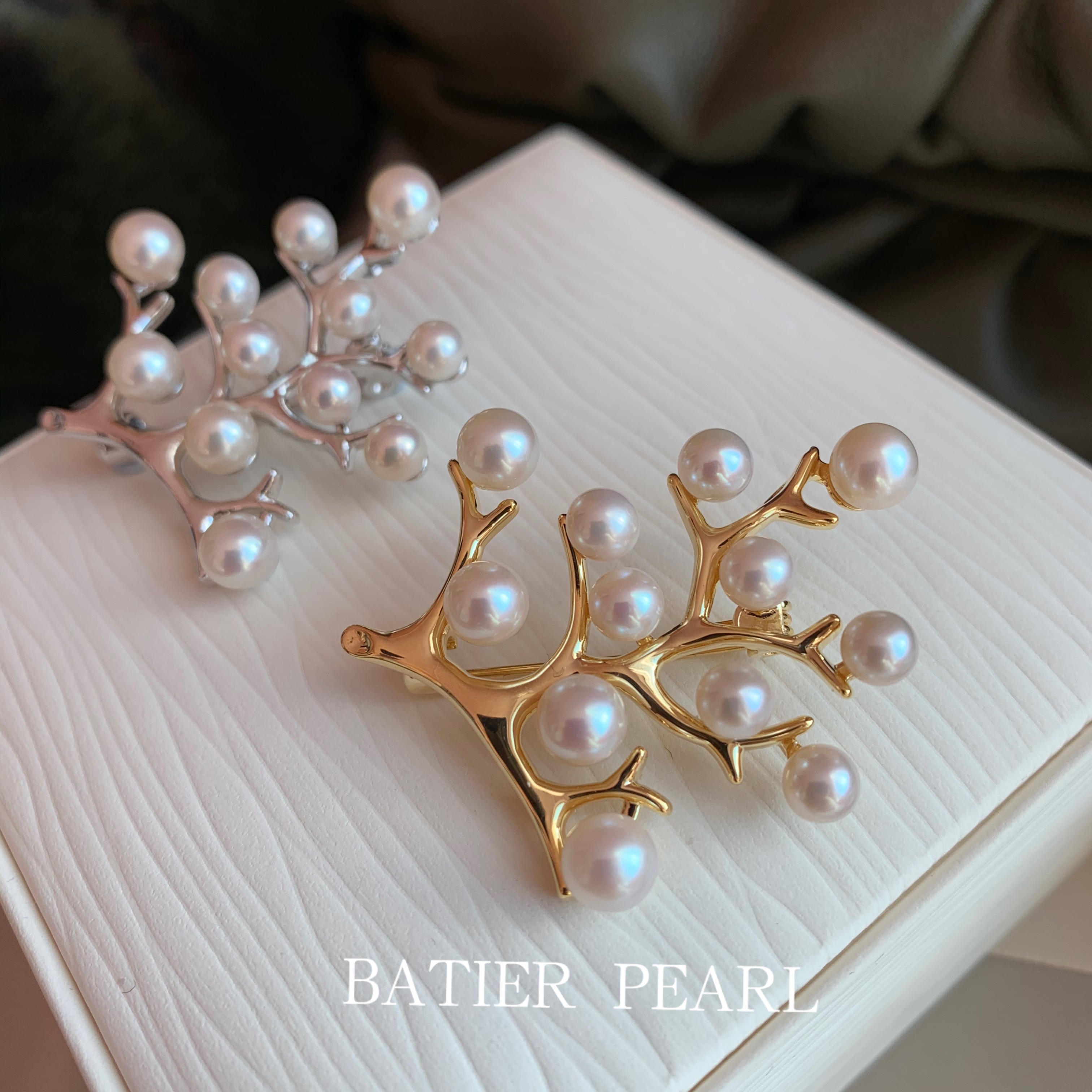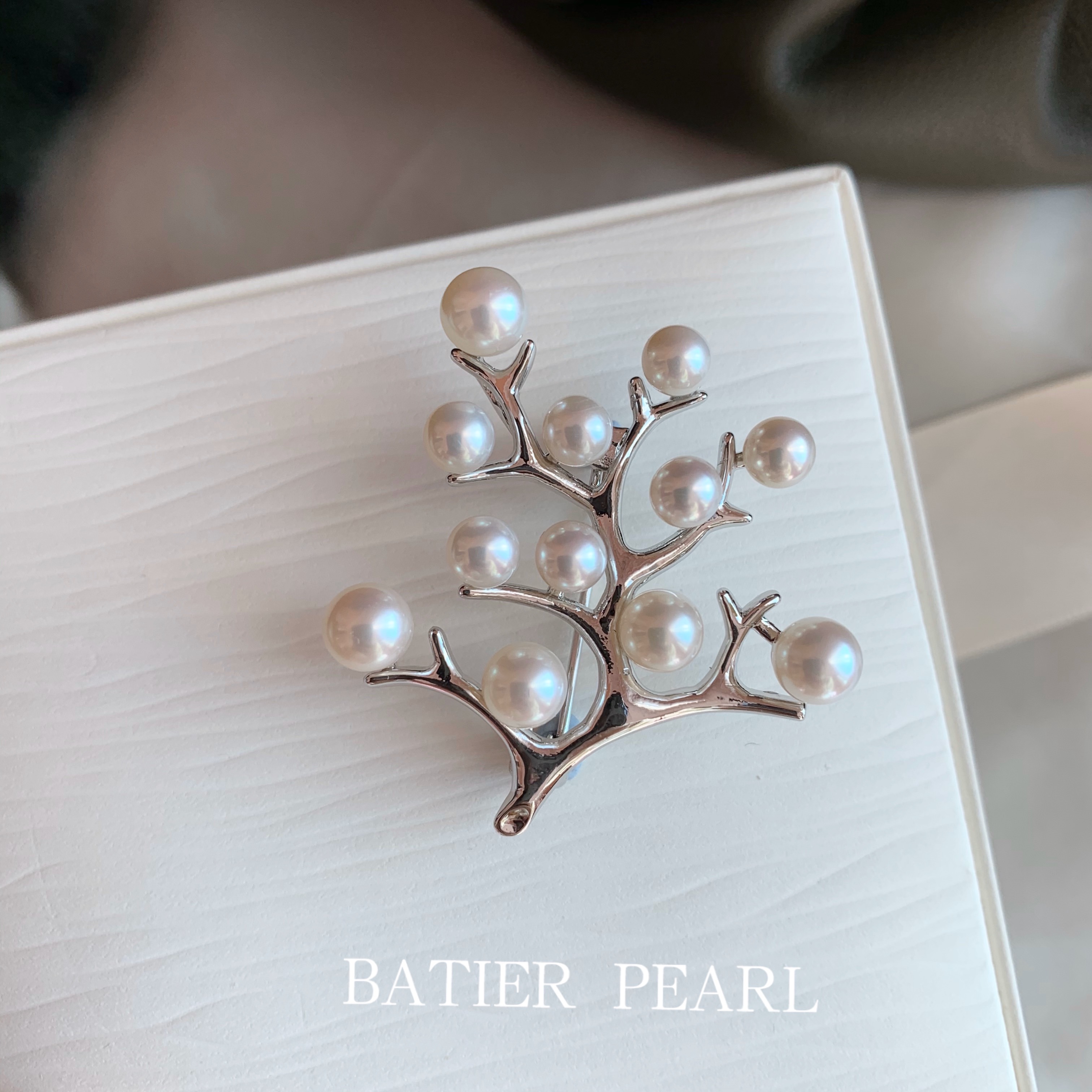 The Ballet Jewellery M Home The Happiness Tree Natural Positive Round Freshwater Pearl Brooch Self-Stay Strong Pushback Spot